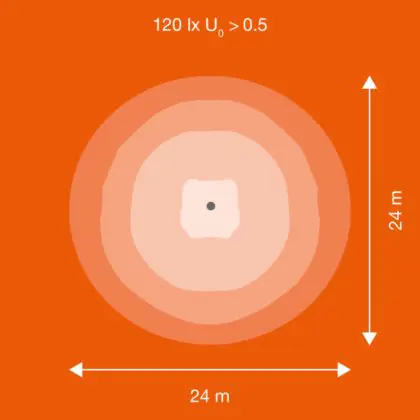 Deze LED breedstraler wordt gebruikt om (grote) oppervlaktes effectief te verlichten. Een hoge lichtopbrengst is hierbij van groot belang; hoe hoger de licht output, hoe groter de verlichte oppervlakte. Hierbij kun je denken aan het verlichten van erven, gevels, bouwplaatsen, sportcomplexen etc. De lichtopbrengst van deze LED floodlight is 120000 Lumen, met een Lumen Watt efficiëntie van lm/W. Dit houdt in dat het armatuur weinig energie verbruikt voor het licht dat deze genereert.