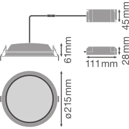 Beschrijving Ledvance LED Downlight Alu DN200 25W 2250lm 100D - 830 Warm Wit | 215mm - IP44 - Dali Dimbaar