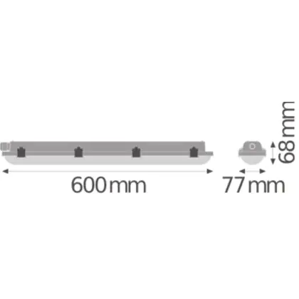 Het Ledvance Waterdichte LED TL armatuur vervangt armaturen die gebruik maken van twee conventionele 18W TL buizen. Door het gebruik van LED kun je de helft van je energieverbruik besparen! Dit maakt de LED batten van 60cm een goede investering voor de toekomst. Verder behoort dit LED armatuur tot de “Damp Proof Value” serie. Deze zijn speciaal ontwikkeld met een hoge IP waarde van IP65 wat het volledig water- en stofdicht maakt en hierdoor ook geschikt zijn voor gebruik in vochtige ruimtes.