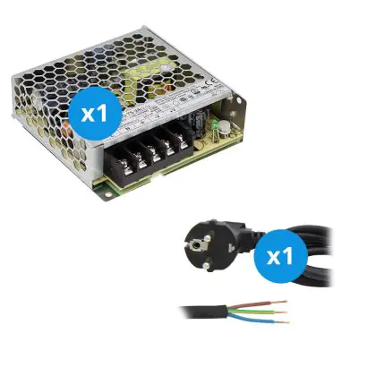 Beschrijving Mean Well Driver | LRS7524 | IP20 | 24V | 75W + Aansluitsnoer 2m met Aarde