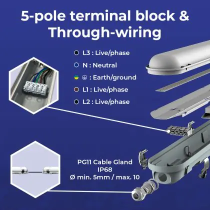 Beschrijving Noxion LED Waterdichte Montagebalk Poseidon V3.0 30W 3900/4200lm - 830-865 CCT | 120cm - Doorvoerbedrading (5x2.5mm2) - Dali Dimbaar