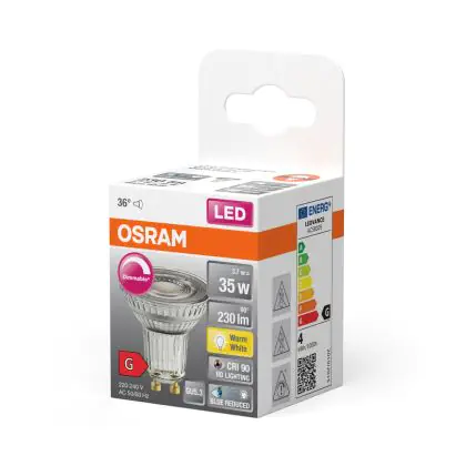 Beschrijving Osram LED Superstar Reflector Spot GU10 PAR16 3.7W 230lm 36D - 927 Zeer Warm Wit | Beste Kleurweergave - Dimbaar - Vervangt 35W
