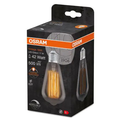Osram Vintage 1906 LED E27 Edison Filament Smokey 11W 500lm - 818 Extra Warm White | Dimmable