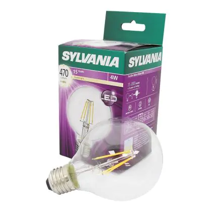 Beschrijving Sylvania Retro ToLEDo E27 Globe 80mm Filament Helder 4W 470lm - 827 Zeer Warm Wit | Vervangt 40W