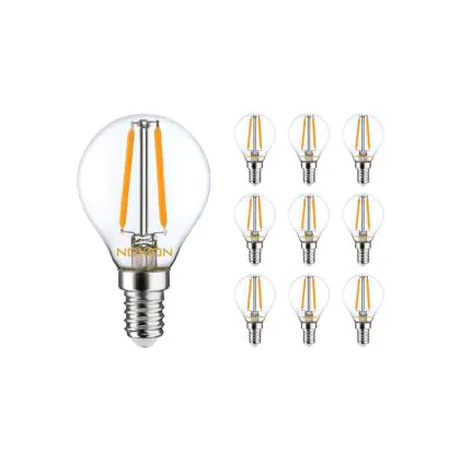 Beschrijving Voordeelpak 10x Noxion Lucent Lustre LED E14 Kogel Filament Helder 2.5W 250lm - 822-827 Dim To Warm | Dimbaar - Vervangt 25W