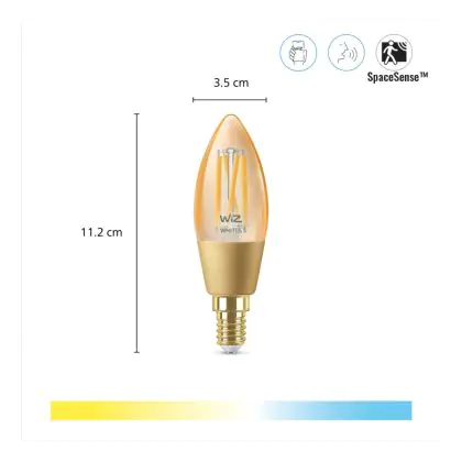 Beschrijving WiZ Smart LED E14 Kaars Filament Goud 5W 370lm | Beste Kleurweergave - Dimbaar - Vervangt 25W